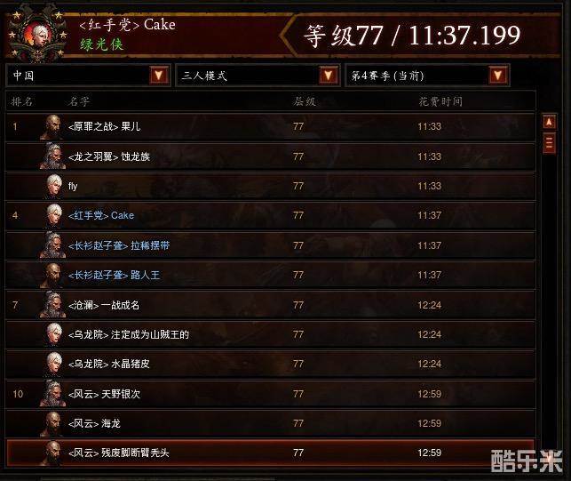 最近在冲3人(辅助武僧+辅助蛮子+捶地蛮子),我们3人77层可以10分多过的,因为BOSS战的时候,基友蛮子手抖挂了死了20秒,导致我们和第一相差4秒.
