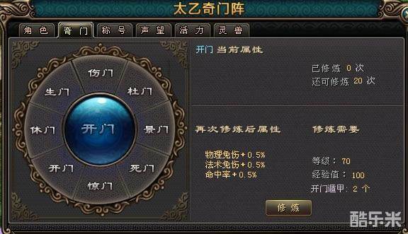 4. 修炼奇门遁甲必须要满足当前等级要求;并消耗一定经验。