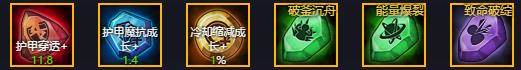 蓝色固定护甲或成长或者双抗成长都可以(看个人习惯)双抗成长配上双抗鞋后期双抗能上130。