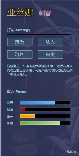 亚丝娜玩法也有好几种,主流就是技能流和暴击流了(负伤流有点鸡肋,发育周期长且没啥用)。技能流有点吃意识和操作,但是在高端局还是作用大于暴击流的。暴击流就是杀猪了,不解释了。