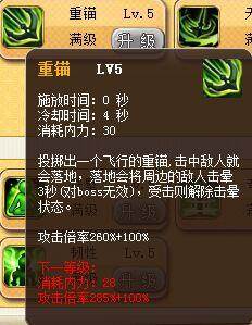 神一样的技能,必带技能,上五星!不管是PK还是副本都是神技。可怕的攻击倍率 超大的范围。短暂的冷却。较少的耗蓝并且,因为有第二下的存在,可以在敌人倒地快起来的时候在他附近放一个。第一下打不到没关系,第二下可以接上,4J之后可以接波纹起身。掌握好距离,让两发都要命中是关键。