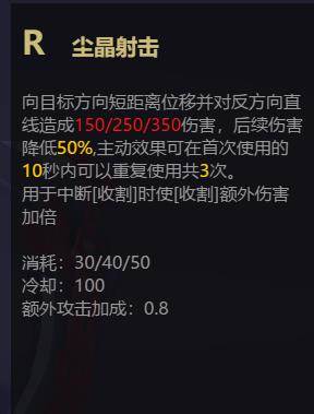 二级点W,多段连击要配合队友。主W副E的加点思路。