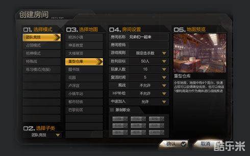 创建房间时需要您对游戏模式、地图以及详细规则进行设置。点击确认则创建成功。