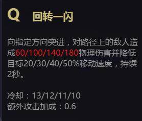 这是强袭自由作为ADC不管是贴脸输出还是位移躲技能都很重要的一个技能。