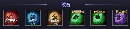 高达是一个物理伤害较高的坦克英雄,拥有多段控制技能,属于前中期打架的英雄。所以选出护甲穿透和护甲很关键。能量爆裂和破釜沉舟对于强袭自由来说都是性价比很高的纹石。