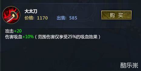中后期再补充大太刀,多一件吸血装,提高团战的容错率和续航能力。