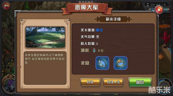 普通模式:消耗体力为6点,以产出经验为主,同时产出大量蓝绿品质的装备和金币