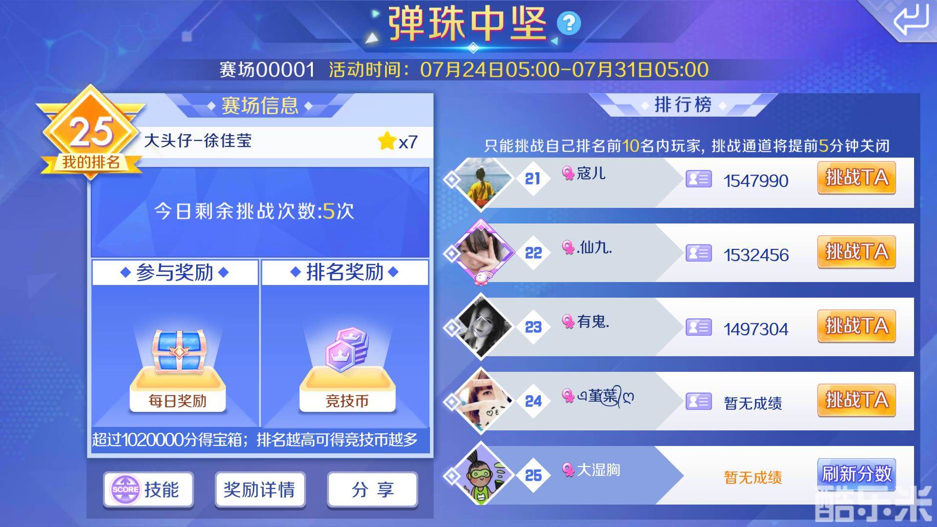 最终排名每周结算一次,小主人们可要算好时间来领取自己的奖励哦~奖励丰厚,竞技币、点券和称号应有尽有!敬请期待吧~
