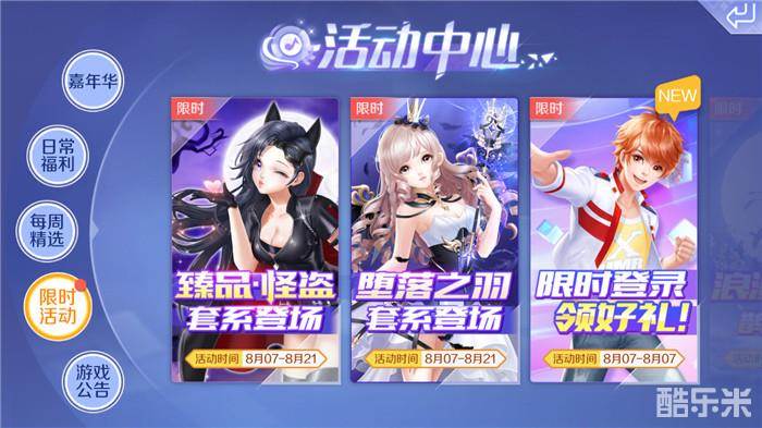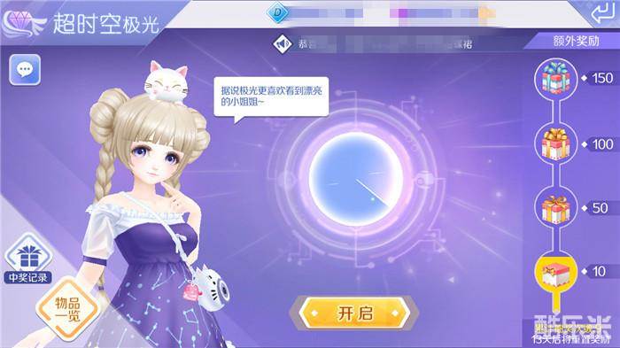 玩家每人每天拥有一次免费的抽奖机会,或者花费10钻石购买1个极光经验券,可以增加超时空极光的抽奖机会一次。在8月7日至8月20日期间进入超时空极光抽奖系统后,就有机会可以获得怪盗套系与堕落之羽套系;限时加入的套系服饰,有需要的童鞋记得要及时关注哦!