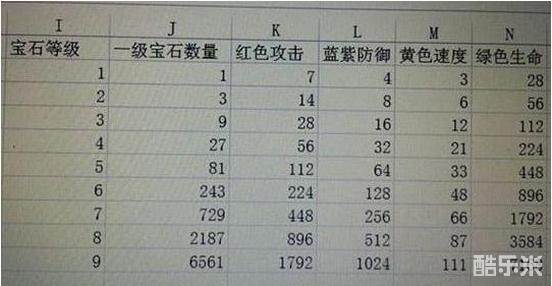 从左往右分别是宝石等级,提升等级所需消耗宝石数量(1级为单位),不同宝石提升后的属性变化。