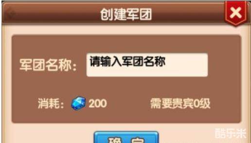 玩家达到一定的等级后就可以选择加入军团或是自己创建一个军团了,创建军团需要消耗200钻石。