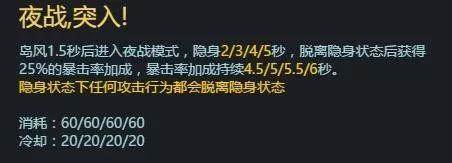 一个隐身技能,是岛风偷袭脆皮和撤退的资本,岛风的增加的暴击率是后期岛风团战前就使对方减员的有力武器,在9.26和10.24版本中遭削弱,推荐副升。