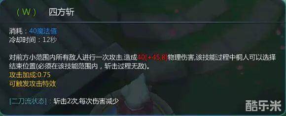 开启双刀后的w技能 斩击两次 但每次的伤害减少 总体还是高的 并能触发两次攻击特效 大部分的墙都能用w灵活的穿过去 w用的好不好是判断一个桐人的标准