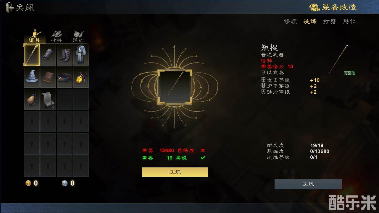 洗炼等级上限,由装备产生时随机生成,装备洗炼等级达到上限后,便不可再进行装备洗炼。洗炼需要装备达到一定的熟练度并消耗一定的黑魂。装备熟练度可以通过在铁匠处特殊修理该装备提升。
