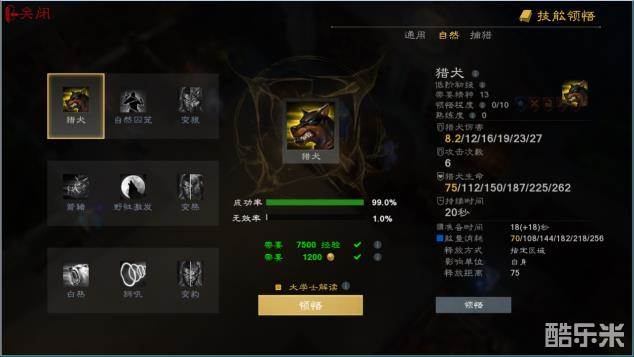刚学习的技能领悟等级为0,在大学士处可提升技能的领悟程度,领悟程度越高技能准备时间越短。领悟程度到10可以学习下一级别的技能。
