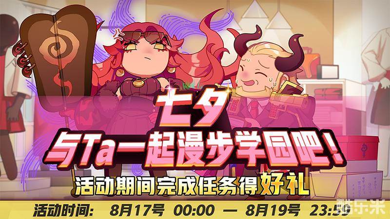 七夕浪漫汇,CP大对决!火爆夫妻牛魔和铁扇,暗恋组合红孩儿和玉子,谁才是你心中的学园浪漫CP呢?8月17至19日七夕期间,使用指定CP英雄完成作战任务,即可获得硬币、拍手器等学园奖励。登录游戏,以及和异性好友组队战斗,还能获取CP组体验卡喔。此外,商城更将举办七夕特别活动,好感度道具“绊扭”售价7.7折,给好友赠送礼物也可以享受7.7折优惠!