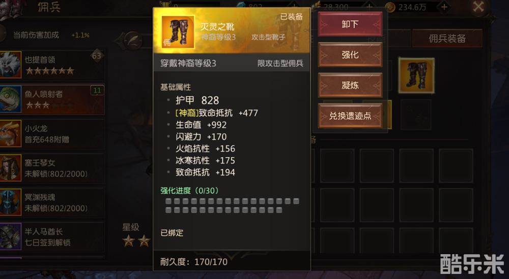 每位佣兵最多可佩戴六件装备,如胸甲、饰品等。装备的来源多样,参与狂乱炼狱和无尽冥域等挑战均有机会获得。佣兵装备与玩家装备一样,可以通过强化、凝练进行属性提升,不断攀登更强境界。玩家还可以将佣兵装备上架拍卖行自由交易,一定能为你带来不菲的收益。