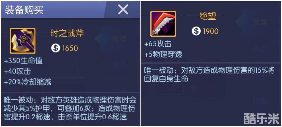 绝望和时之战斧不必多说,无论是打野罗伊还是上单罗伊,这两件装备都是最为核心的。剩下的部分不建议再出输出装了,罗伊本身的技能成长就非常高,加上有被动的攻击速度加成,所以绝望和时之战斧就已经很恐怖了。