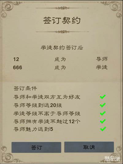 3、双方玩家确认,接受契约后,双方正式成为导师和学徒;