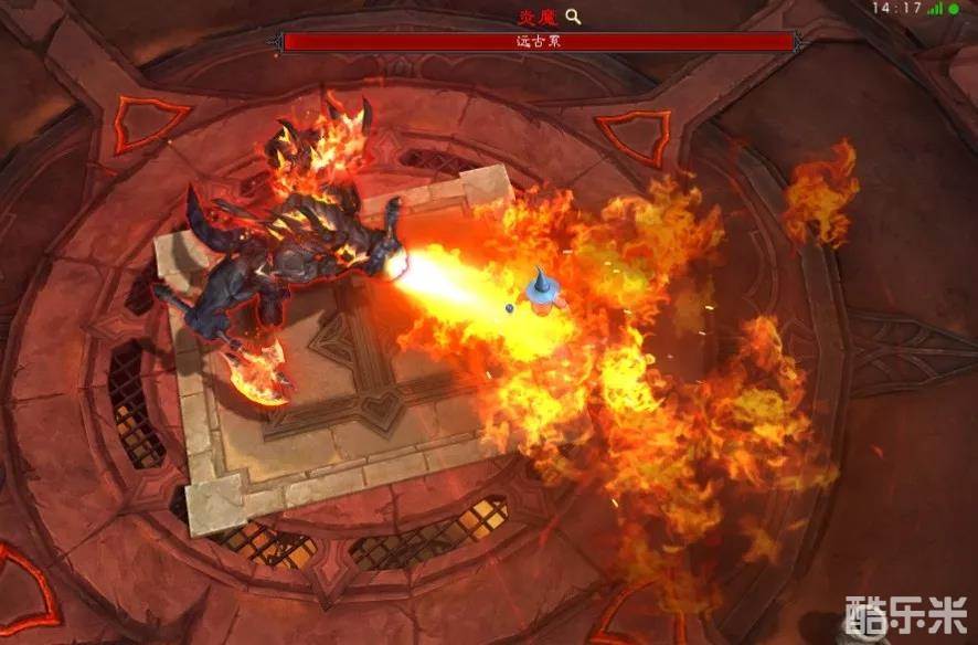 2.约25%血量二阶段变身后,拉远距离,吸引他进行冲锋锤,在他趴下的同时,就迎面跑过去,到他身后,这时候炎魔应该刚刚跳起来,可以普攻两下或三下,马上再拉远距离,保证就算炎魔落地火雨也只受到一波伤害,留出时间吃肠或喝药。一旦炎魔交出火雨,由于冷却,接下来大概两次炎魔的行动周期内,不需要引冲锋锤,可以视为一阶段正常输出。