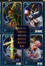 B—打开英雄卡册(商城右上角的大按钮),在左边已经激活的英雄上右键点击打开菜单,选择“召唤卡片”。