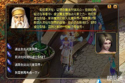 在亚特大陆上,魔法师无疑是最具探索精神的一群人。他们在经过上万年的艰辛探索后,终于发现了异界元素的秘密:通过和元素法灵签订契约,从而掌控强大的元素魔法。 伟大的先驱者阿尔法历经千辛万苦,穿越虚空,带回了元素法灵们的契约,魔法师们掌控元素之力的梦想从此成为了现实。 若是身为魔法师的你也想学习强大的元素魔法,那还等什么?快去寻找先驱者阿尔法吧。 当你找到先驱者阿尔法时,他却遗憾地告诉你,由于连接异界的四大灵柱遭到虚空魔主的破坏,灵柱上的虚空原石遗失,无法再提取学习元素魔法所需要的元素结晶。所以要想得到元素魔晶,你就必须要先修复四大灵柱。根据阿尔法的指示,你必须先去寻找地灵柱的守护者——地魔导师欧格。 欧格告诉你,地灵柱的虚空原石是由10只大地法灵的魔力凝聚而成,但是虚空魔主入侵了地灵柱所在的死亡林地,并囚禁了大地法灵们。要想修复灵柱,就必须先前往死亡林地,营救大地法灵们。 来到死亡林地,请先清理虚空魔主的爪牙们,以防在解救大地法灵时遭到它们的干扰。同时,在解救大地法灵的同时,也需要注意,在这些被囚禁的大地法灵中,有部分是虚空魔灵伪装而成的,小心别被它们偷袭了。 10只大地法灵得到解救后,它们的魔力重新凝聚成1枚虚空原石·地。这时,你便可以带着虚空原石·地前往地灵柱的所在处修复灵柱了。修复之后,你得到了1枚由地灵柱提取的地之精华和1块能降低极地空间冰冻伤害的大地护符。 接下来你需要去寻找水灵柱的守护者水魔导师瑟希。这是一位漂亮的御姐魔导师,不过她现在正为水灵柱遭破坏的事急的焦头烂额。 你从水魔导师瑟希处得知,虚空魔主潜入凛冬高原,抢走了水灵柱的虚空原石,并将其封印于冰灵圣泉中。要想修复水灵柱,你必须先让瑟希送你去凛冬高原,然后去采集冰灵圣泉。 采集到冰灵圣泉后,你需要将它带入极地空间。要想让冰灵圣泉重新凝结成虚空原石·水,就必须去吸收极地空间中出现的极寒之气。当看见极地空间中出现蓝色的光圈时,就说明那是极寒之气的所在地,赶紧移动脚步踩上去吧,那样就能吸收到极寒之气了。 进入极地空间后,严寒阵阵袭来,令你受到冰冻伤害。不过要是你有携带大地护符,那它就会为你抵挡部分的冰冻伤害,使你所受到的伤害大大减小哦。 当吸收10次极寒之气后,冰灵圣泉就能凝结成虚空原石·水了,赶紧带着它去修复水灵柱吧。在修复水灵柱后,你将得到可以用来合成元素魔晶的水之精华以及1枚可以降低异界火种灼烧伤害的冰晶护符。 接下来,你该去找火魔导师赛伦了,他是火灵柱的守护者。赛伦导师是个怪老头,别看他一把年纪,脾气可不小,你赶紧向他说明自己的来意吧。 你从火魔导师赛伦处得知,虚空魔主入侵了火灵柱所在的异火平原,偷走了虚空原石·火,并用暗魔法熄灭了可以淬炼虚空原石·火的异火祭坛。 你需要前往异火平原采集异界火种,这样才能重新点燃异火祭坛。需要注意的是,采集异界火种时你会被火焰灼伤,若你有携带冰晶护符,就能大大减少火焰对你产生的伤害哦! 采集到10个火种之后,尽快去点燃异火祭坛。当异火祭坛重新燃起火焰的同时,你将获得虚空原石·火。 带着虚空原石·火去修复火灵柱,这样,你就能得到可以用来合成元素魔晶的火之精华了。 在修复火灵柱后,你需要去找最后一位灵柱守护者风魔导师亚瑟琳,她会指引你去修复最后一根灵柱——风灵柱。 风魔导师亚瑟琳告诉你,虚空原石·风被虚空魔主封印在狂风长廊的风印之柱里。要想解封风印之柱,需收集足够的风之祝福。在这个过程中,你很有可能遇到强力的旋风和虚空魔主的爪牙。尽量避开它们,否则你会受到伤害和干扰。 点击风之祝福源石可以采集风之祝福,在收集到5份风之祝福后,就可以去解封风印之柱了——成功解封风印之柱,你就可以获得用来修复风灵柱的虚空原石·风。 使用虚空原石·风修复风灵柱后,你将得到用来合成元素魔晶的最后一份材料——风之精华。 在千辛万苦集齐地、水、火、风四个精华后,你终于可以合成元素魔晶了。赶紧打开任务背包,右键点击任一精华进行合成,一块闪闪发光的元素魔晶终于到手了。 终于拿到了元素魔晶,快带着他回去找阿尔法吧!然而不幸的是,阿尔法告诉你,虚空魔主卷土重来,它打开虚空裂缝,率领手下们入侵元素异界,企图抓走元素法灵们。 为此你必须再前往元素异界走一趟,帮忙元素法灵抵抗虚空魔灵的入侵,并粉碎虚空魔主的阴谋。 到达元素异界后,你会看到一个闪光的结界,那就是虚空结界,用以守护元素异界的根基。 与焦急的异界守护者菲利克斯交谈后,即可与虚空魔灵开战。魔灵们会一波接着一波地冲击、破坏虚空结界。你需要做的就是消灭入侵者,并守护虚空结界,若虚空结界被破坏,你的任务也就宣布失败了。 在第六波魔灵的入侵被粉碎后,愤怒的虚空魔主将出现在你面前,它疯狂地对你展开攻击。你需要做的就是拿起武器,迎接挑战。记住,一旦开战,所有的一切都需要在20分钟内完成,否则,努力将白费。 在消灭虚空魔主后,你将得到被虚空魔主藏起来的虚空符文,赶紧带上它去封印虚空裂缝吧。 修复了四大灵柱,又消灭了虚空魔主,解除了元素异界的危机,你因此得到了元素法灵们的认可。先驱者阿尔法送你前往法灵空间,在那里,元素接引者阿斯嘉将