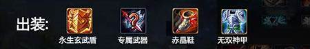 孙坚的定位是团战控场与肉盾,有被动强大的物理免伤能力,在出装方面应以高护甲的肉装为主。被动的格挡效果与格挡盾不叠加,在性价比上玄武盾要高于格挡,而孙坚的技能消耗很大,需要一定的蓝量装备支撑。那么孙坚的前期出装就是:玄武盾、专属、水晶靴、无双甲。如果敌方法系伤害过高,可以将无双甲换成抗魔披肩。后期输出可以选择泣血枪、冰枪这类半肉型输出装,防御的话可以选择冰甲或者烧刀。
