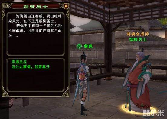 与NPC陈留—烟柳居士对话,点击“将魂合成”的选项打开选择职业和名将的面板。有的名将只有物理系的将魂,有的名将只有法术系的将魂,有的名将两者皆有,需要先选择左侧的职业,再在右边点选想要合成的名将将魂,当材料集齐后,点选“开始炼魂”。