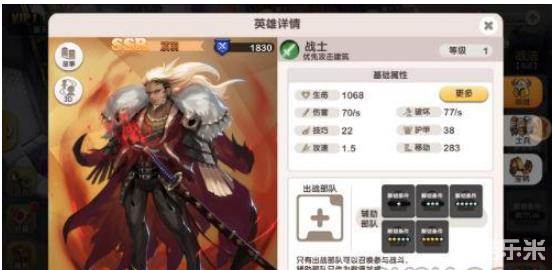 主动技能上,项羽的霸王能够给自身带来瞬间恢复的效果,提升其续航能力。并且后续附带伤害、破坏、暴击、暴伤的提升,能够很好的提升项羽对部队亦或是对建筑的输出能力,还是很不错的。