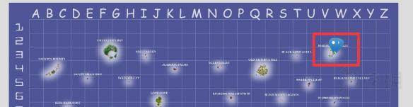 点击后地图就会自动定位到岛,把地图缩放一下就可以看到地图的坐标。