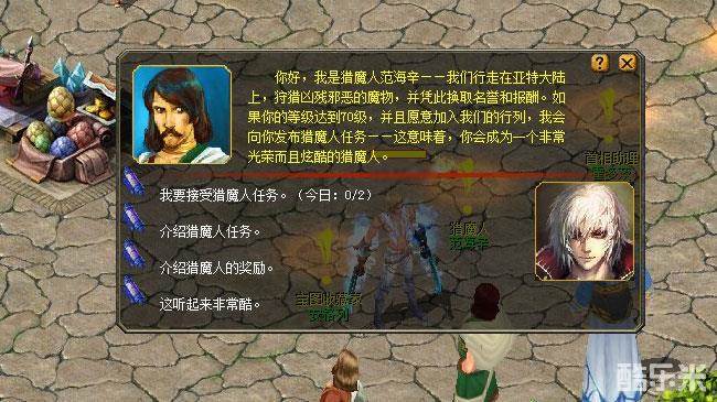 1、每天等级70级以上的勇士可以到猎魔人范海辛那里接取2次猎魔人日常任务。 | |