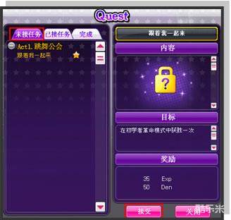 在游戏中除了跳舞之外,还有丰富的任务系统,任务完成后可领取经验值或G币,让你在激舞的同时又可以领取到额外的奖励哦!