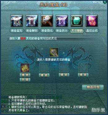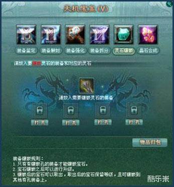 1、装备在镶嵌灵石之前,需要先对装备进行开孔,可以镶嵌相对应类型的宝石。