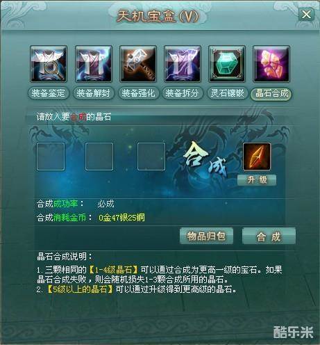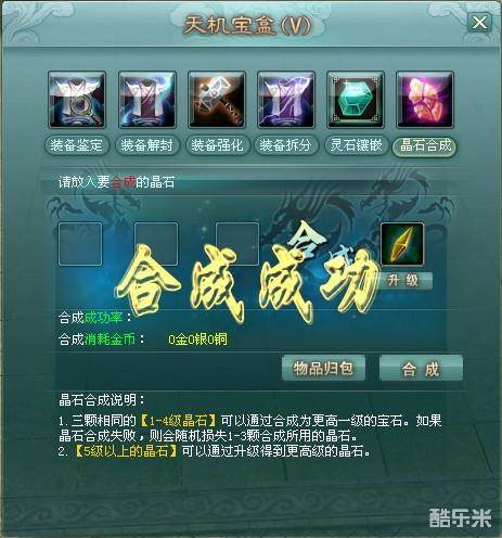 1、合成成功后,低级强化晶石消失,生成高一级的强化晶石。