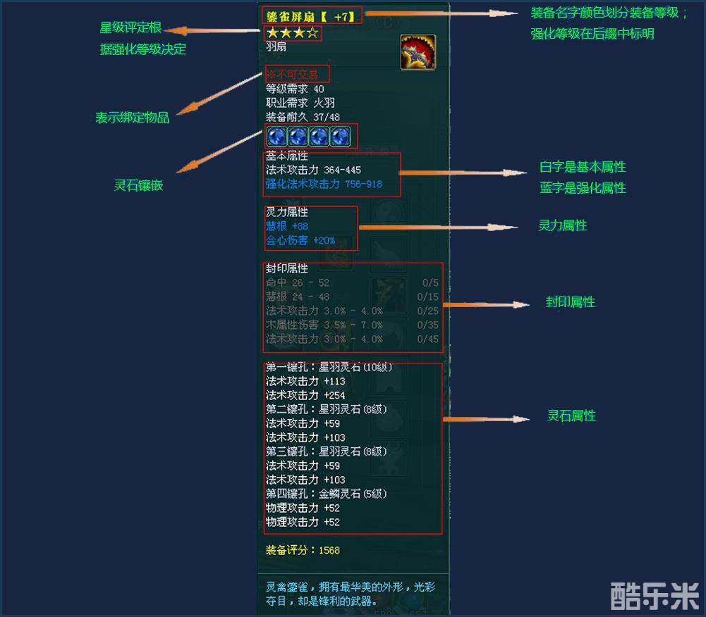 灵石属性:装备通过镶嵌灵石增加的属性,增加的属性对应所镶嵌的灵石属性。