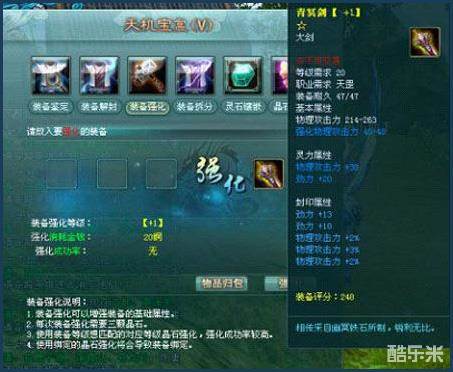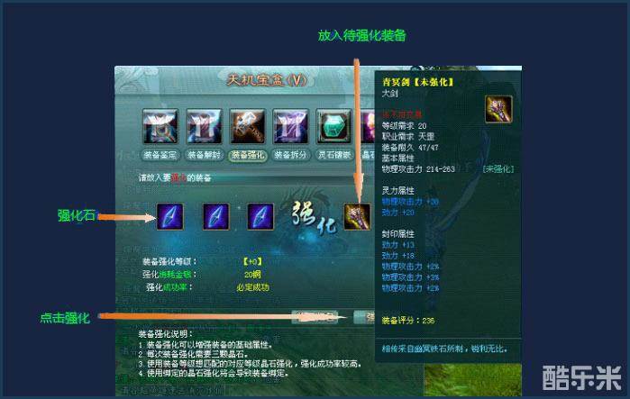 在天机宝盒中的装备强化系统中,使用强化晶石可以强化装备的基础属性。