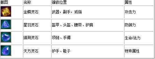 防御:可以镶嵌在盔甲,头盔,腰带,护肩上。