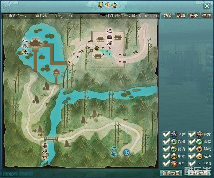 翠竹林是武峻山庄首任庄主阳林武亲手栽种,每根竹子都是从南海千里移植过来的香玉碧波竹,常年碧绿如翡翠。
