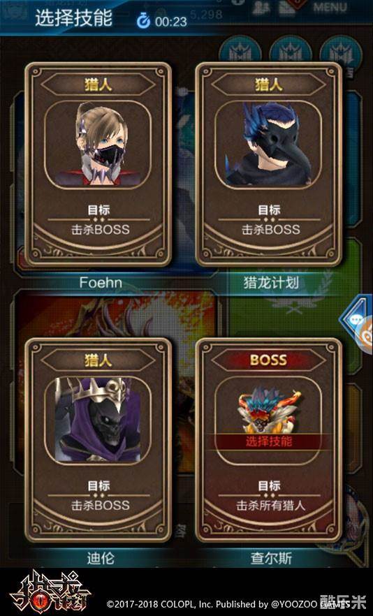 抽牌结果会决定1个BOSS和3个猎人。