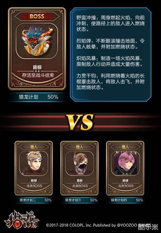 BOSS只有1条命,如果BOSS死亡,猎人就会胜利。