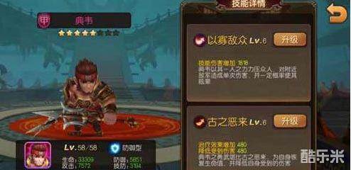 现在的均衡将相当于鸡肋。输出不够防御也不行。所以也不推荐。初期推荐盾典韦很多人推荐他。这是为什么?我给大家讲讲。对于平民来说。初期推图比pk更重要。一、首先看技能。推图的时候。盾和均衡将挺多的。所以典韦的1技能有几率晕又相当于群攻。很实用。典韦的2技能能减伤还能配合主角的加血。也很好。二、看典韦缘分。大缘分好开。首充就送一个穆桂英。