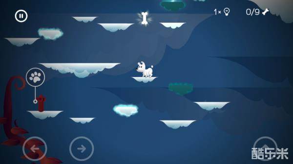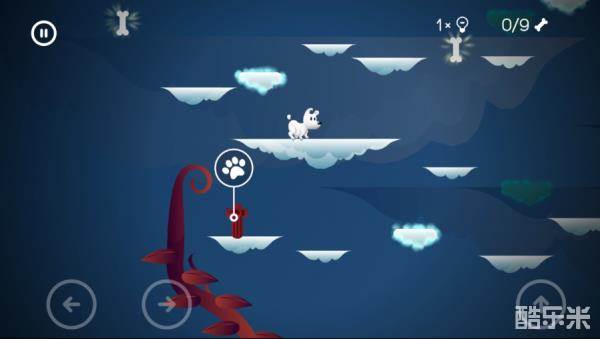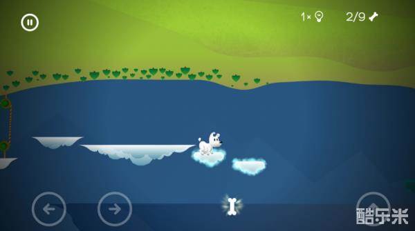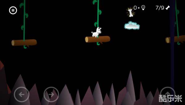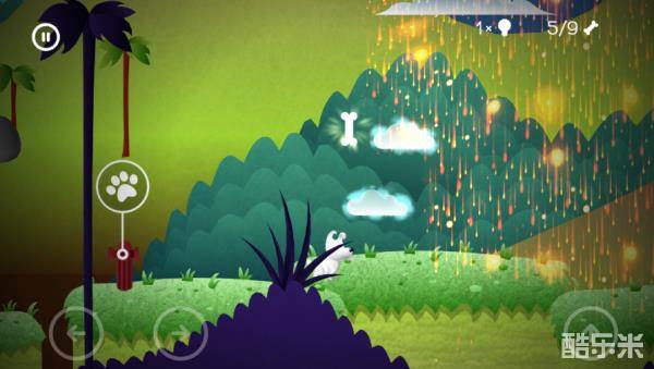 移动云朵,进行跳跃,乌云会有闪电,只要在没有闪电的时候跳就可以,先跳到左边收集第一根骨头,然后往右边跳收集第二根