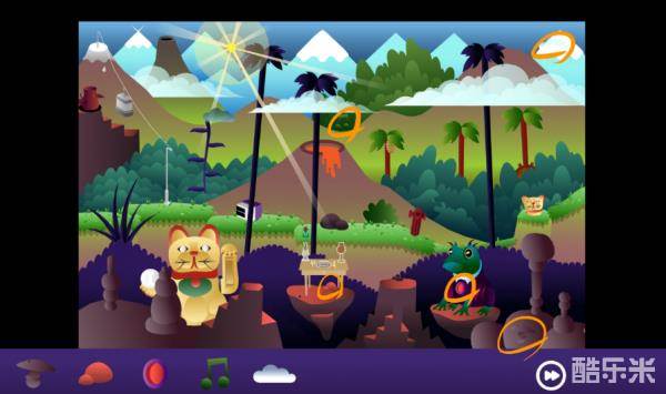 按顺序叠放在红色树上,顺序如图,放好会出现乌云,分开成两云朵,跳上去