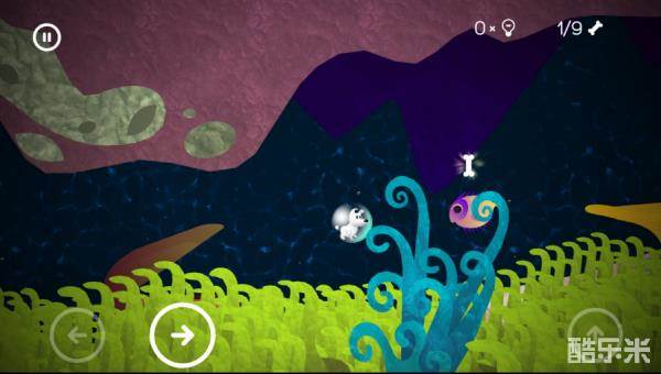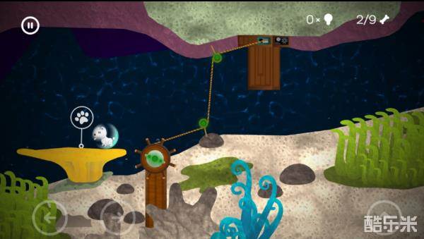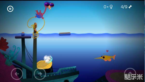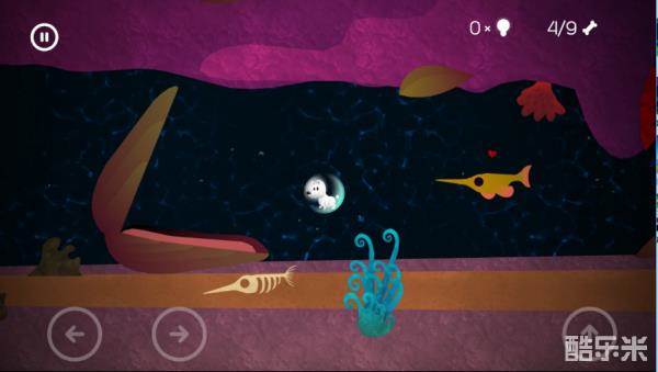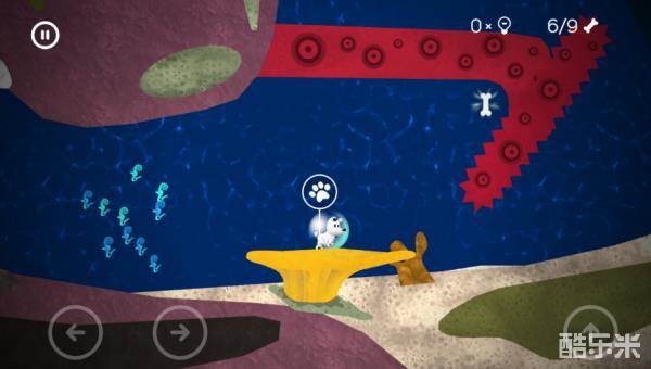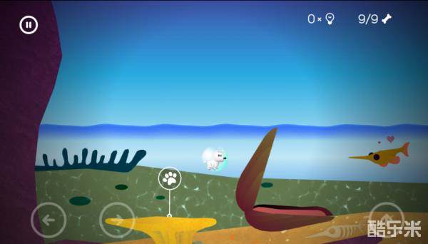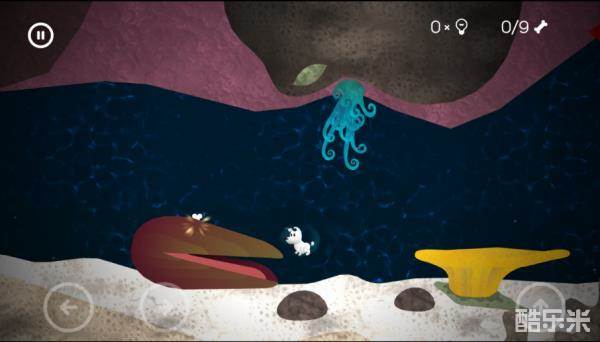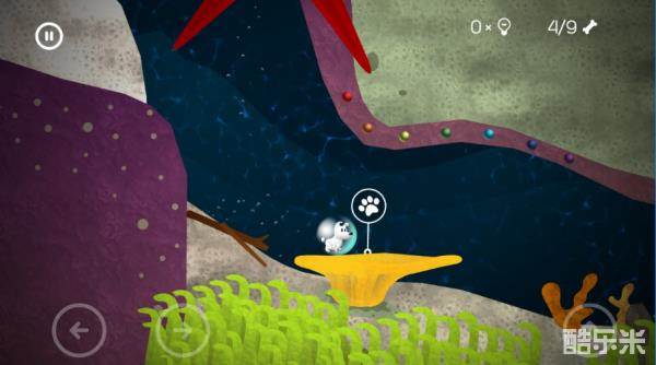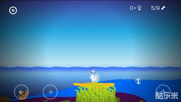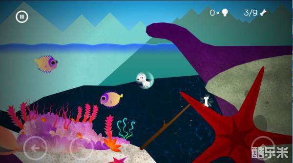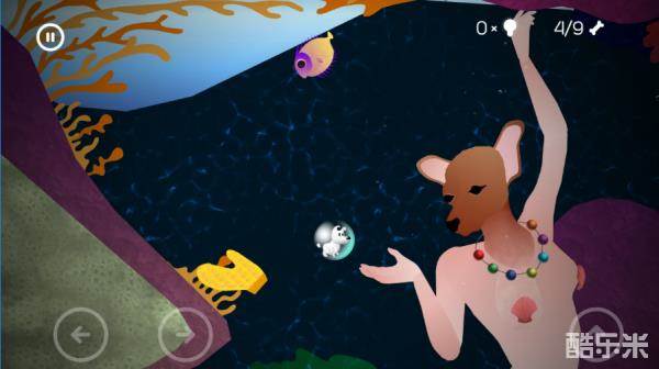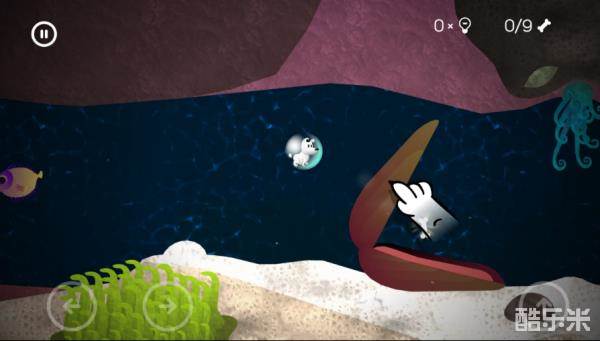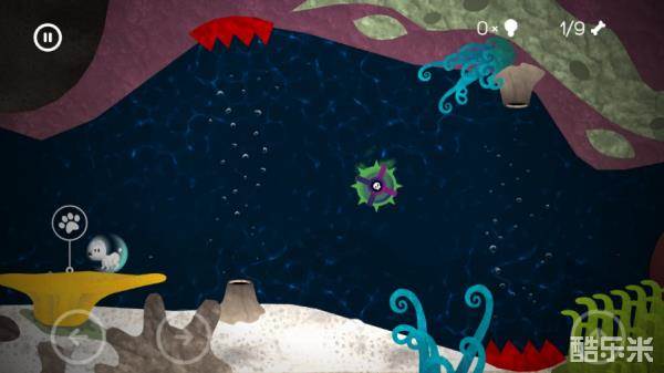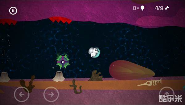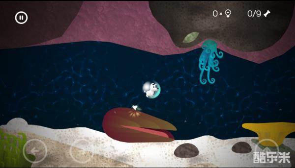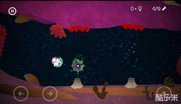 记住水下世界千万不能让气泡破掉,一般墙壁碰到一次会闪,第二次就会破,遇到尖刺会直接破掉, 米皮会无法呼吸。但是我们也不需要一直点击屏幕控制它向上,只要按住屏幕不动泡泡就会自动向上飘啦