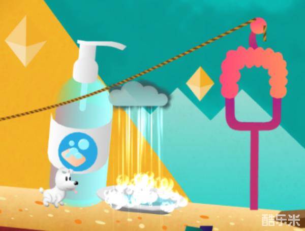 合并云朵,浇水盘子里就会有泡沫,然后转动滑轮,将泡泡器移动到盘子上