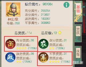 5.大臣依照其品质有不同的资质星级,资质星级越高,喂资质果时资质点转化的属性数值越高。