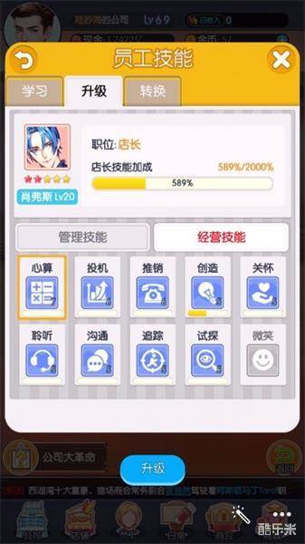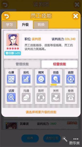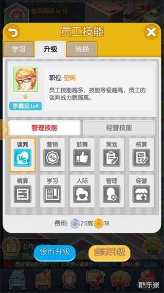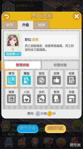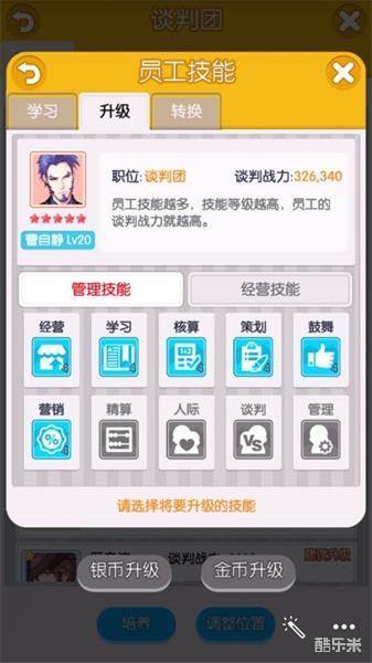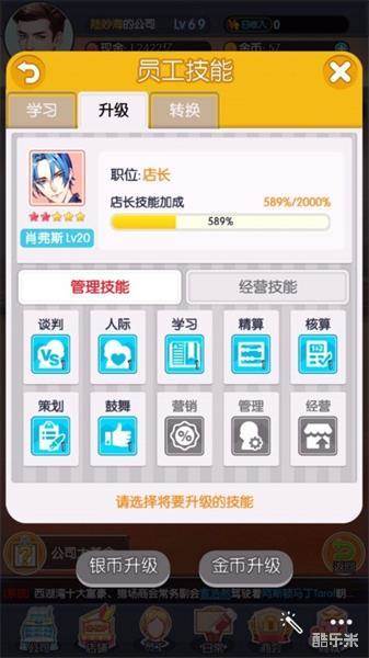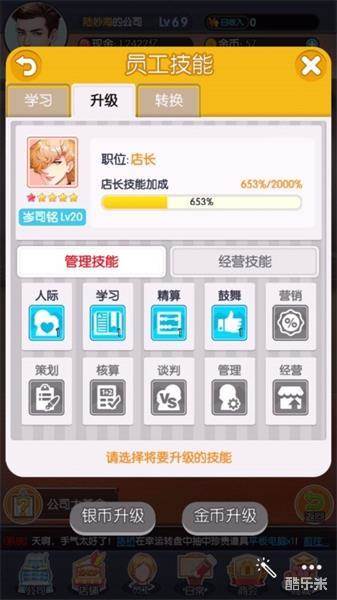 经营技能和管理技能的区别就是一个需要银子升级,一个靠点。