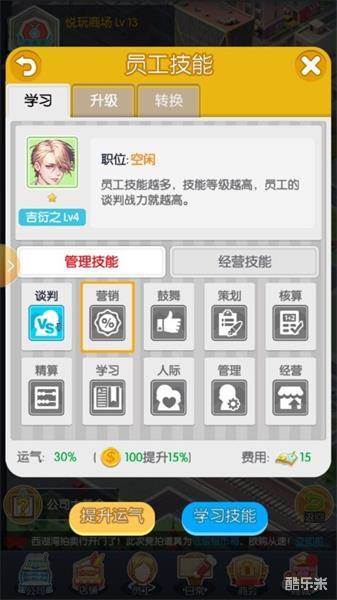 那就是悟性,这个大家都应该知道,那就是悟性。但是要知道这悟性只是概率高低,并不是绝对的,只是大概率。所以出现卓越技能最后比绝对多也是有的,还有这个技能领悟管理技能或经营技能也是随机的。