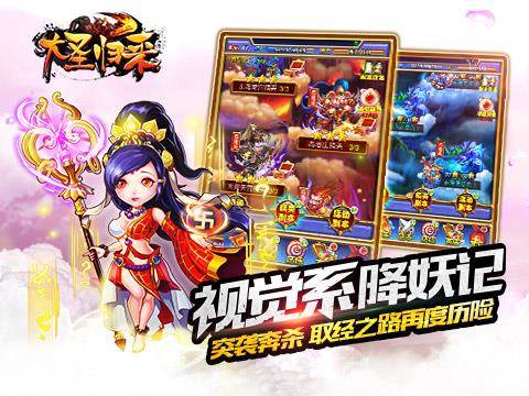 《大圣归来》是触控游戏首款西游题材2D策略卡牌手游,顶级视觉效果呈现西游传奇,经典西游角色72变随心变身,悟空再次大闹天宫创新斗战玩法,西天降妖之路再度历险,突袭奔杀斩将封神,公会城池战与大圣共存亡!
