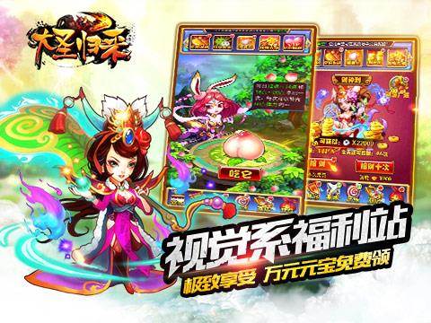 《大圣归来》为玩家上演的一场史诗级福利盛宴,全民元宝任性从天降!众多公测活动助阵颠覆西游战场,“开服登陆送好礼”每日惊喜乐不停,“等级大礼包”助你迎接全新挑战,“每次蟠桃宴”补充体力获取更多充足养分,“盘缠养成”让你荷包满满富游西天!还有更多超值豪礼与活动助力你的降魔之路!另外,《大圣归来》还设置了丰富多样的运营活动,价值数万元的元宝,秒变土豪唾手可得,不论是副本、竞技场PVP,还是大闹天宫,海量元宝等着你!
